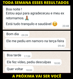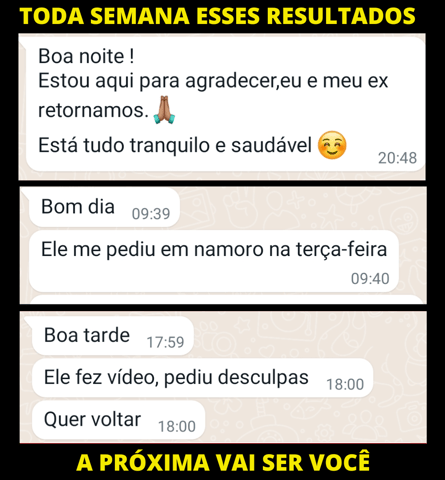 OBS: Tem casos que não tem resultados. Não faço nenhum tipo de trabalho ( pactos com espíritos, sacrifícios de animais, oferendas, coisas negativas). O que faço são as técnicas para ajudar na atração e passo também um segmento de tratamento para seguir todos os dias ao ter contato para ajudar a pessoa permanecer, gerar desejo, amor, grudar em você.
